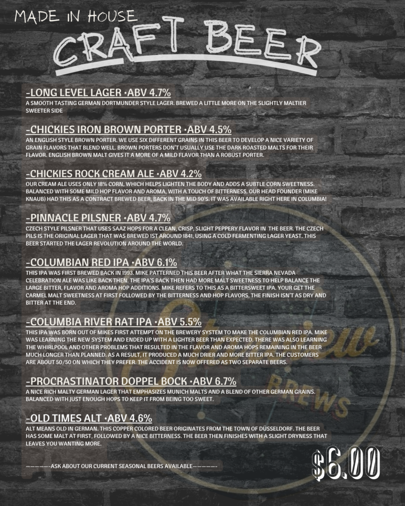 Mixers: Coke, Diet Coke, Sprite, Root beer, Ginger Ale, Club Soda, Tonic, Lemonade, Unsweet Tea, Cranberry Juice, Orange Juice
